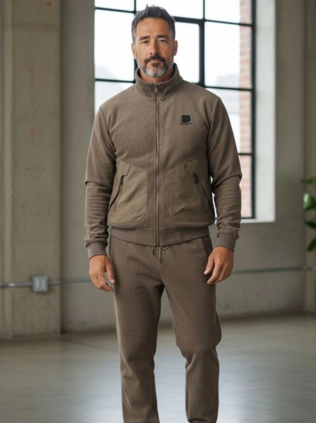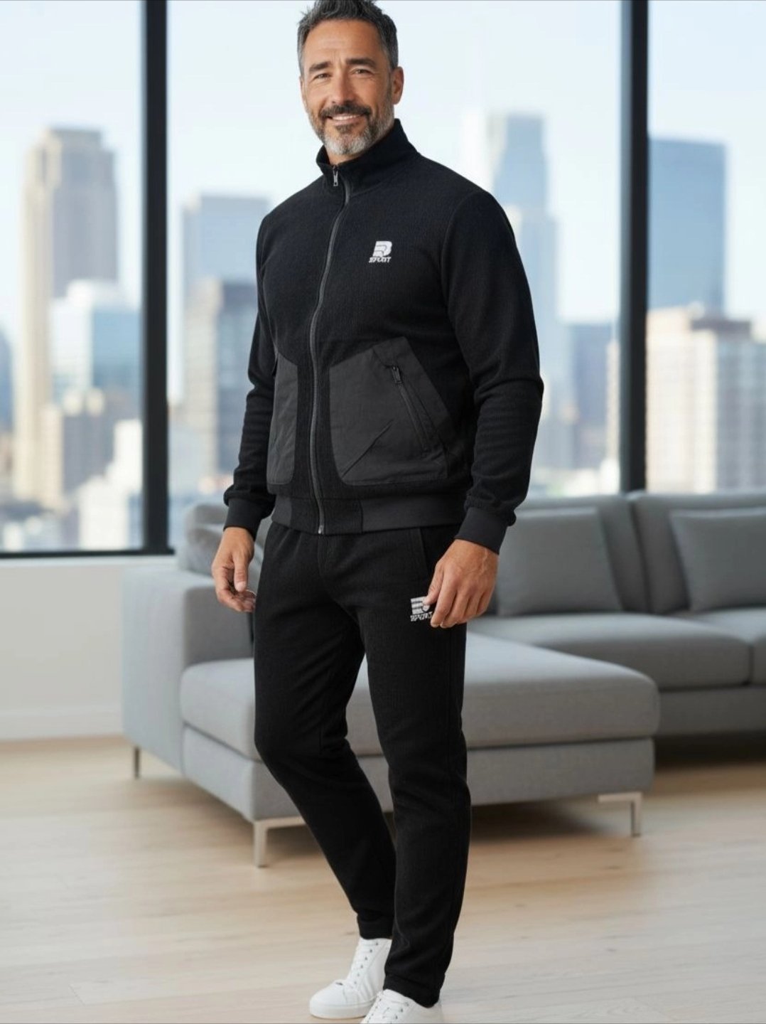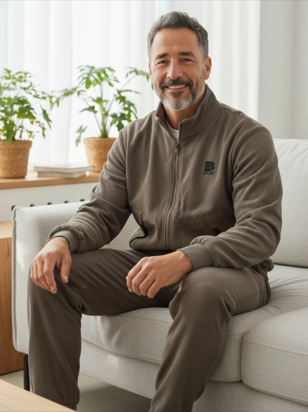 بجامة رجالي فاخرة جدًا من ماركة RALLY العالمية المصنوعة من خامة الكرودروي الفاخر، من الداخل مبطنة مخمل ناعم بالكامل لتمنحك دفء وأناقة لا مثيل لهما. تأتي بجاكيت بسحاب عملي وجيوب جانبية بسحّابات (عدد 2)، مع تصميم عصري ومريح، أما البنطلون فيتميز بوجود جيبين جانبيين وجيب خلفي بسحاب لمزيد من الأناقة والعملية. تصميم البنطلون من الأسفل فلت فاخر بدون مطاط، ليمنحك إطلالة شبابية أنيقة تناسب جميع الأعمار.