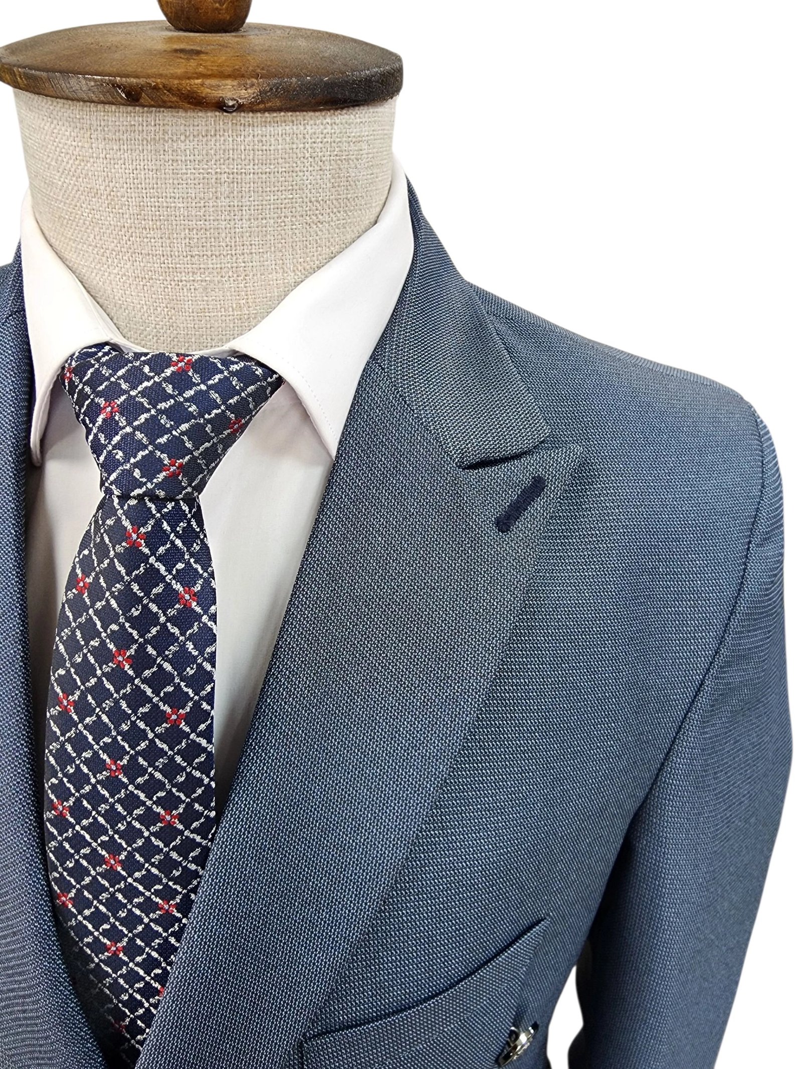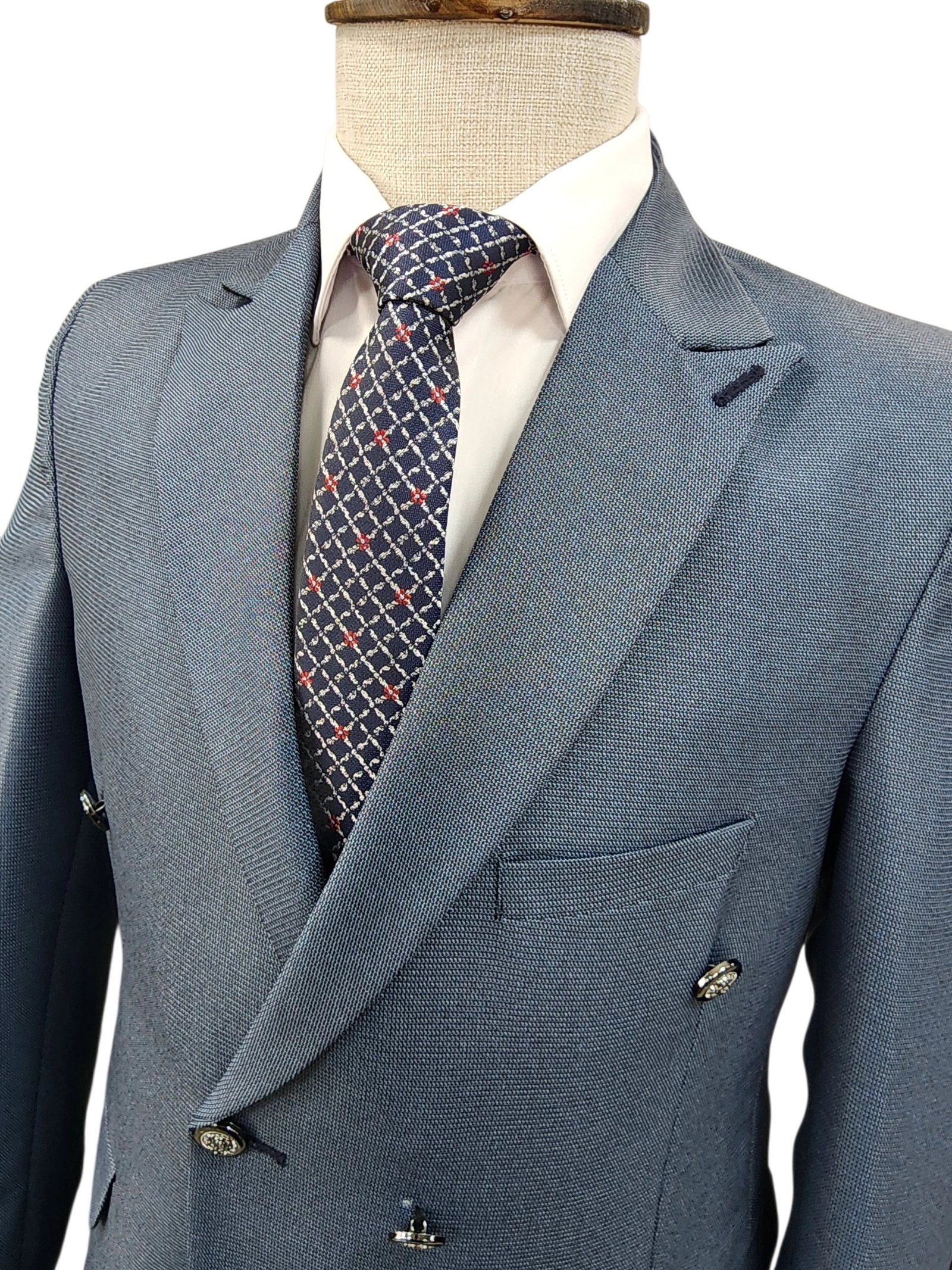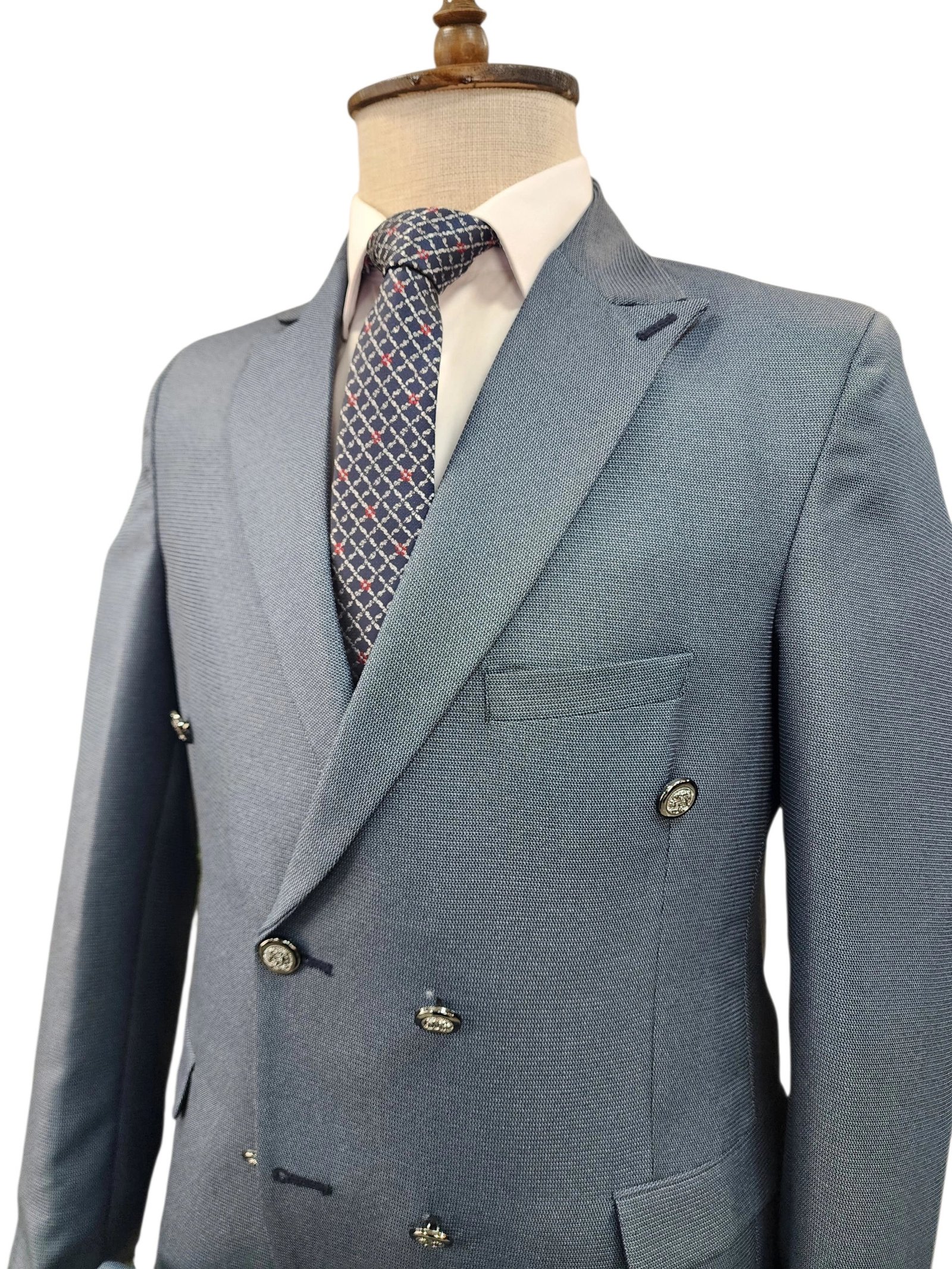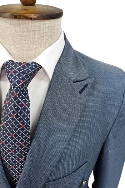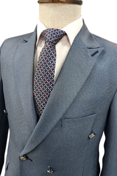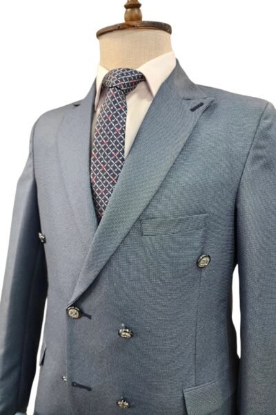 بدلة سلم شبابي دبل برست مبزر بتصميم أنيق يعكس الفخامة والعصرية في نفس الوقت. مصنوعة من خامة بوليستر تدوم طويلًا . القصة المميزة تعطي مظهراً شبابياً متناسقاً يناسب مختلف المناسبات الرسمية أو الاجتماعية مثل الأعراس، الحفلات، المقابلات العملية، والمناسبات الخاصة.