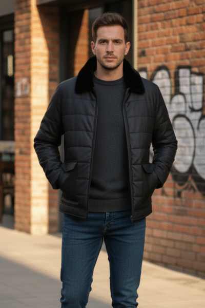 تصفيات – جاكيت شبابي فاخر بتصميم سلم فيت نفخ وتربروف فخم ، مبطن من الداخل وثقيل دافئ ناعم يمنحك راحة وأناقة في أيام الشتاء الباردة.