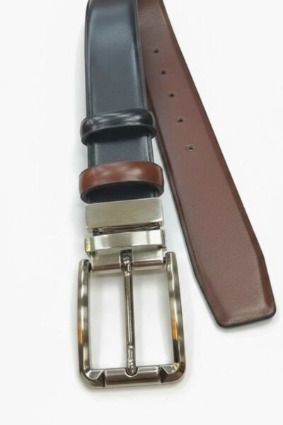 الحزام جلد طبيعي 100 % بلون أسود غامق وبني يمكن ارتداؤه على كلا الوجهين صنع في الصين و مصمم بعناية بنفشة متناسقة, من خامات عالية الجودة، بنمط عصري يتماشى مع العديد من الإطلالات المتنوعة, مناسب لجميع الاعمار والاذواق .