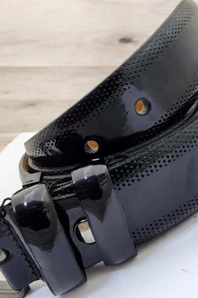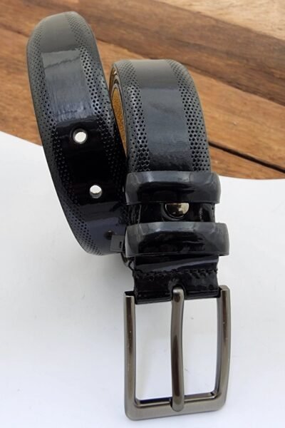 حزام رجالي تركي فاخر رسمي أنيق ولونه أسود لميع تكسيدو ، يتميز بإغلاق معدني بزيم شوكة ذات جودة عالية جدا وعرض البزيم المعدني 4:5 سم وطوله 5:5 سم ، غير لامع لإضفاء لمسة عصرية على مظهرك ، عرض الحزام : 3:5 سم و الخامة ذات جودة عالية وتشطيب مميز وراقي ومتوفر بطول ( 105 سم – 130 سم ) .