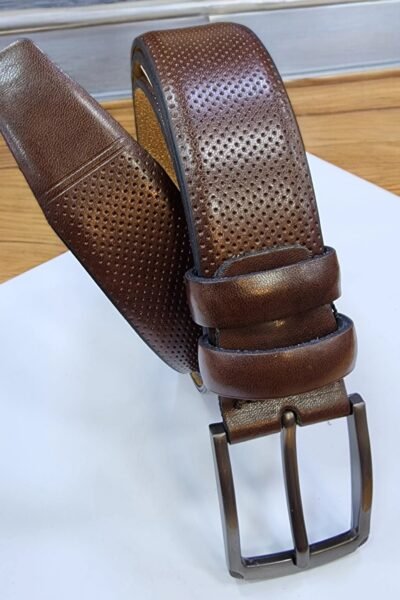 امنح نفسك الأناقة والراحة مع هذا الحزام فقد صمم بعناية فائقة لتلبية احتياجات الرجل العصرى يتميز بجودة عالية ومتانة فائقة لضمان استخدامه لفترة طويلة سوف يكمل هذا الحزام إطلالتك بأناقة ويضيف لمسة من الجمال والتميز إلى أي ملابس ترتديها . يمكنك ضبط الحزام بسهولة ليتناسب مع محيط خصرك بشكل مريح لانه يحتوي على ثقوب متعددة ليتناسب مع خصرك . و سواء كنت ترتديه للعمل أو لمناسبة رسمية أو حتى لإضفاء لمسة من الأناقة على إطلالتك الكاجوال فسيوفر لك قسطا من الراحة والأناقة في آن واحد و سيكون إضافة رائعة إلى مجموعة اكسسواراتك وستكمل إطلالتك بأناقة لا مثيل لها وهو خيار مميز كهدية لمن تحب .